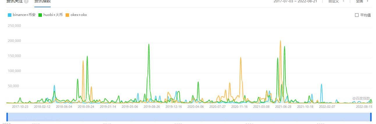 2021年6月9日,币安、火币、OKEx等关键词被百度、微博屏蔽,因此产生了个搜索小高峰。