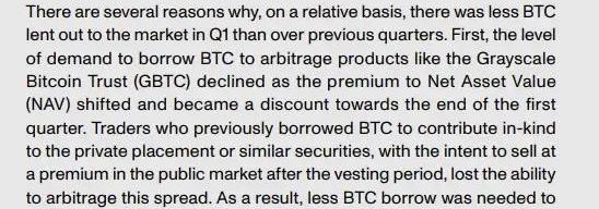 这要怎么解读?这意味着Genesis借给人们BTC来创建GBTC。好的,这好像没有证据?不。请看这段包含在Genesis的2021年第一季度报告中的话: