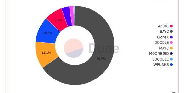 BAYC地板价的下跌与NFT抵押借贷平台BendDAO的清算事件关系紧密,BendDAO的抵押物价值占比最高的NFT系列就是BAYC,目前BAYC占BendDAO?总抵押品价值的65.7%。