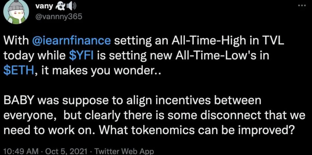 尽管当时BABY的地位很高,但这条推文引发了一个涉及YFI代币经济学改造的有条不紊的构思过程。大约两个月后,一群Yearn社区成员发布了YIP-65:不断发展的YFI代币经济学。该提案概述了一个连续的四步计划,该计划将投票权和回购YFI汇集给活跃的长期YFI持有者。该提案于2021年12月下旬以超过99%的赞成票通过。