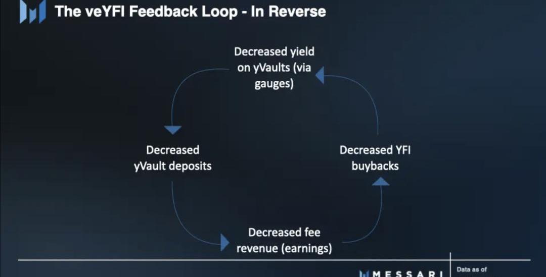 PlatypusFinance是一种使用ve模型的基于Avalanche的稳定币DEX,是一种经历过这种反馈循环版本的协议。然而,Yearn作为一个成熟的DeFi“基础”的角色肯定会提高TVL的底线,因为整个大型独立协议类别都围绕yVaults构建了他们的产品。元逻辑是:即使在雇佣存款人消失后,转换成本和风险仍然会超过收益损失,从而保持最大的存款人和最大的收益来源。YFI价格也存在类似的逻辑,因为YFI不是以预先设定的通胀方式发行,而是随着TVL的下降而减少。因此,如果投票柜倾销他们的收益,收益本身的规模就会缩小。