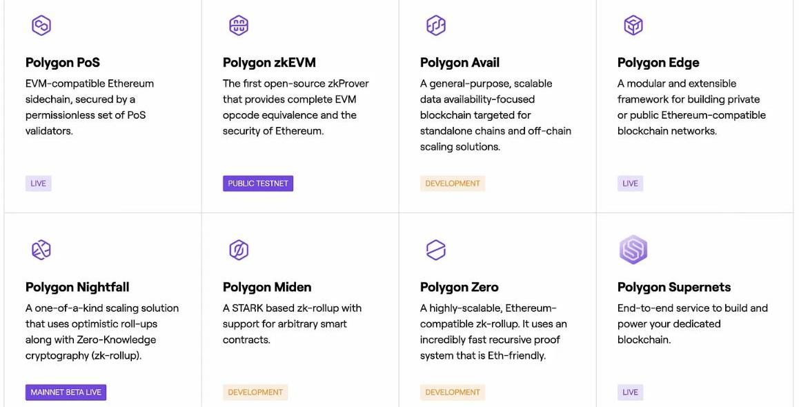 我不得不把Polygon单独拎出来分析,Polygon已经发展成为一套完整的以太坊扩容工具。你可以看到他们有很多L2解决方案,大部分是被收购的独立团队/项目。