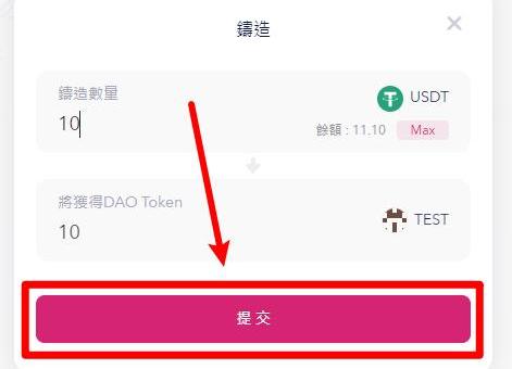 筹集时间结束后可以看到下图界面,点击,然后小狐狸弹窗会跳出,点击确认交易即可。