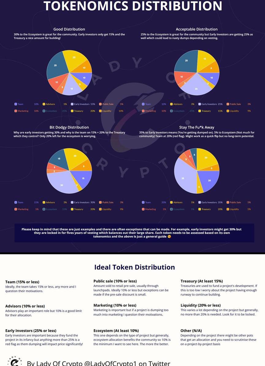 关键是,没有一个万能的衡量方法。虽然在99%的情况下,我不会碰一个即将大量供应的代币,或者一个给早期投资者提供巨大比例的代币,但我还是会根据具体情况做出不同的选择。