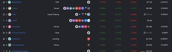 DeFi项目锁定资产前十排名及锁仓量数据来源:defillama