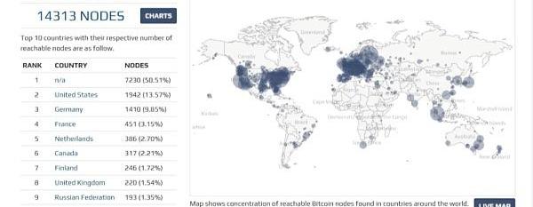 比特币拥有现有任何主要区块链中数量最多的独立节点。这些节点在地理上分布广泛,任何人都可以在比特币的区块链上运行一个节点,无论是全节点还是挖矿节点。运行完整节点甚至挖矿的进入门槛非常低,因为单个矿工可以简单地加入“矿池”。