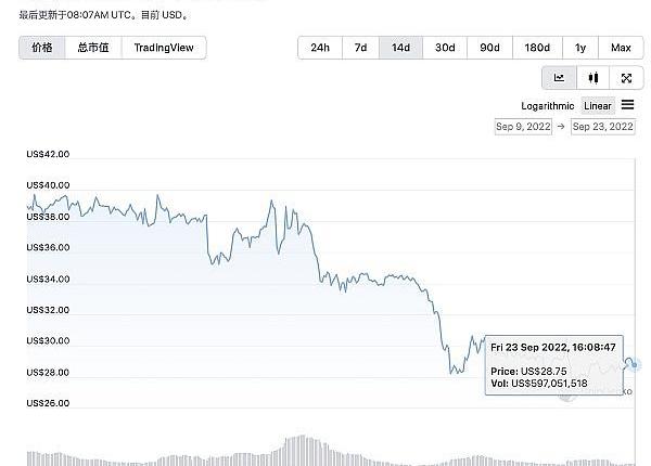 在合并完成的一周内以太坊经典的价格下跌了23.4%。CoinGecko的数据显示,当前ETC价格为28.75美元。