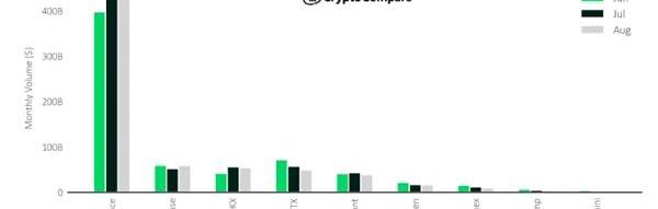 值得注意的是,受市场动能抑制和波动性影响,集中交易所的现货交易量在8月份猛增36.8%至1.91万亿美元。