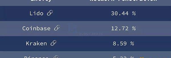 合并后,排名前4的实体分别是Lido、Coinbase、Kraken和Binance,合计占比已经超过55%。