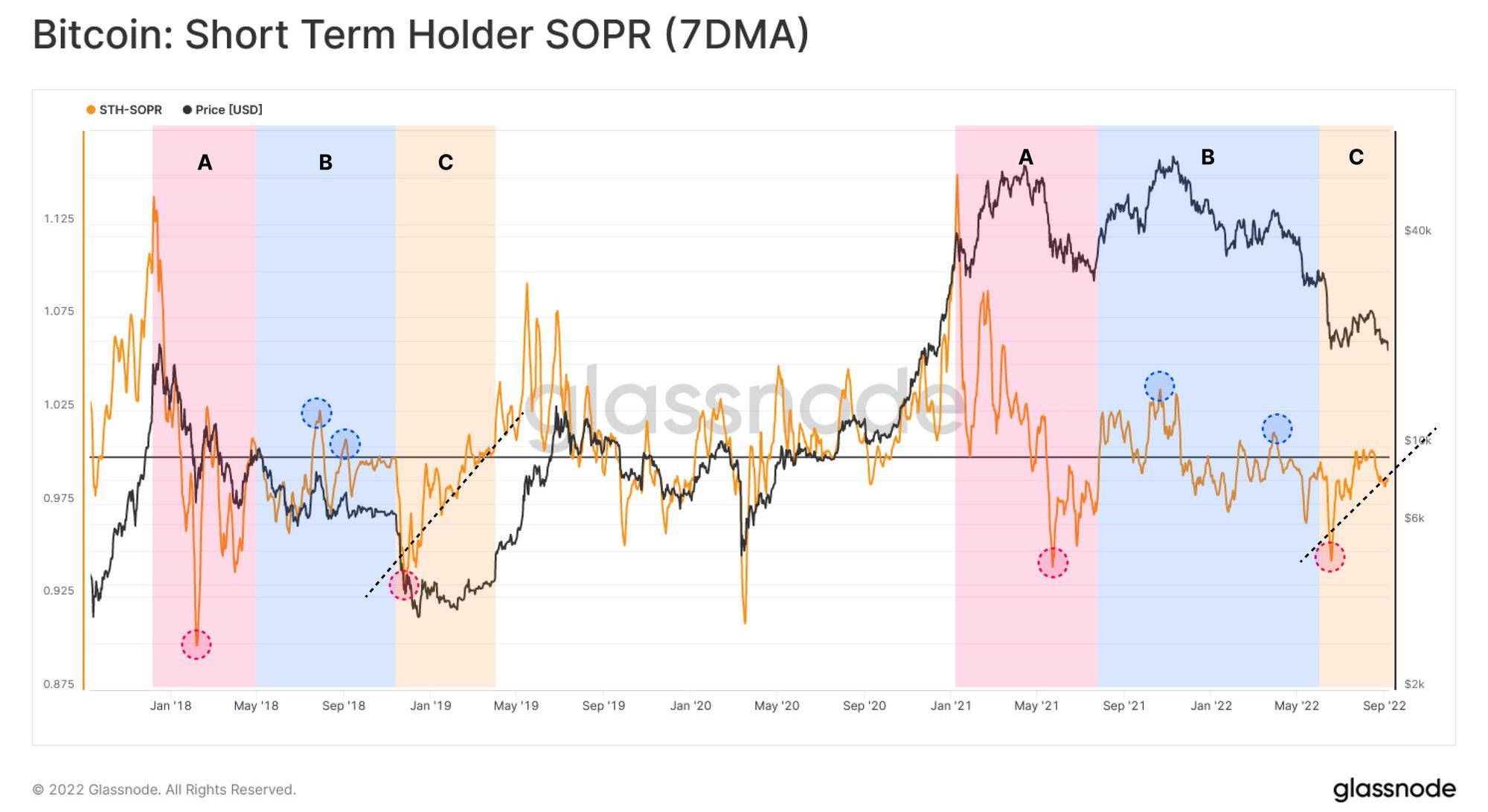 STH-SOPR结构为绘制不同的熊市阶段提供了有力的支持: