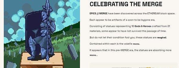 EPICSMERGE是ProofofBeautyNFT工作室为庆祝以太坊合并而创建的链上像素艺术项目。EPICSMERGE在以太坊区块空间中被发现,每一个雕像都是一个即将过去的时代文物。这些雕像由21种元素构成,共有16位神话人物和英雄。有些雕像似乎无法在时间的流逝当中幸存下来,但不要被他们的状况所,每一个雕像在合并完成之前吸收更多的法力点,合并之后,他们可以通过提升仪式得到重生。