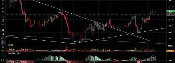 以太坊昨日1720短空获利30美刀,1750空单获利50美刀,随后反手做多又是接近第一止盈获利近50美刀,恭喜跟上思路的币友多空完拿捏,,四小时级别可以看出整体是沿ma5一路上行,目前有形成双顶的迹象,macd能量柱转为实心且逐步缩量,说明多头力度减弱,日线均线呈向上指引,k线突破站稳ma30,整体偏向多头,思路上建议若回踩可以先多后空,1700-1670多,目标1750-1780,1780-1800空,目标1750-1700
