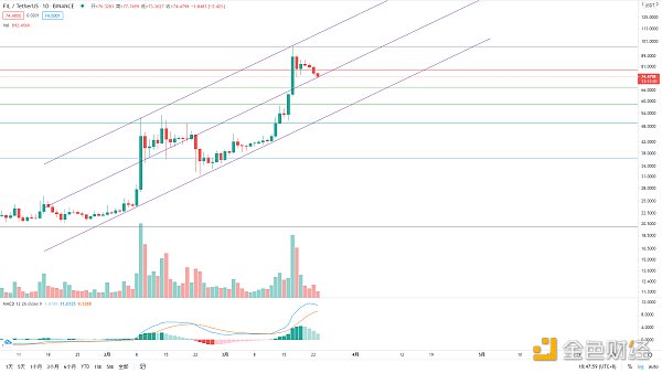 联动下跌,趋势支撑在66-68美金区域,整体仍是向上趋势,不破就暂时持有。