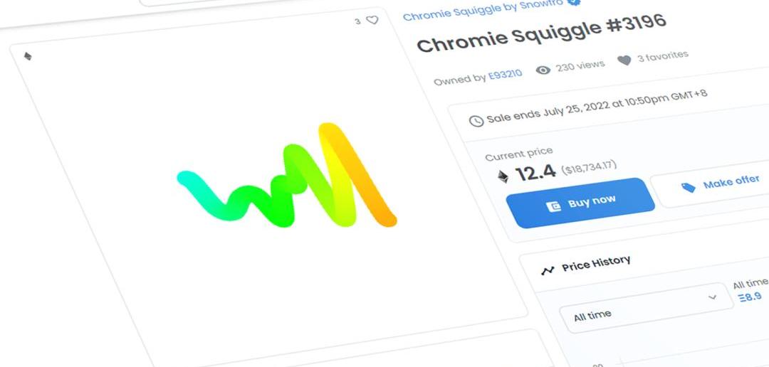 ChromieSquiggle是ArtBlocks的第一个策展层NFT项目,由匿名创始人SnowFro制作。ChromieSquiggles使用铸造过的通证种子来确定梯度角度、颜色和段数等特征。
