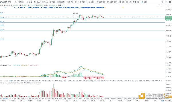 近期延续区间盘整行情,横盘整理的时间越久,后续一旦方向向上,爆发力度也将越大,短线支撑32.8美金,强支撑27美金,不破持有。