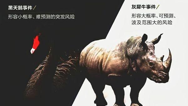 对于金融市场的投资者来说,黑天鹅和灰犀牛事件都是相当严重的危机,被认为是投资者最难以应对的风险。?黑天鹅事件通常指看似不太可能发生,但却突然发生了的突发重大事件。其由来是在18世纪,西方人只知道天鹅是白色的,直到抵达澳洲之后才发现也有黑色的天鹅存在,由此引申而来的黑天鹅理论,就拥有了代表超出人们预期的事件突然发生的意思。?