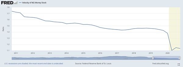 这种不断贬低流通中的法定货币供应量,对地球上大多数居民的财富产生了巨大的影响。所有生产出来的货币仍然掌握在极少数人手中,这一点从同期M2货币存量的速度急剧下降就可以看出: