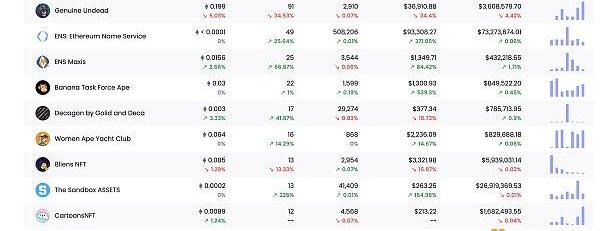 8.数据:BAYC系列NFT近24小时交易额增幅超100%
