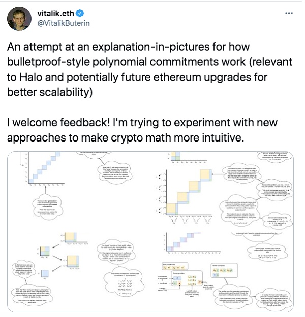 以太坊联合创始人Vitalik Buterin周二发布推文称,尝试用图形对“多项式承诺”(polynomial commitments)方法的工作原理进行解释。