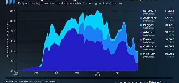 因Celsius还款和Avalanche上的激励措施,Aave在Avalanche上未偿贷款余额比以太坊上高出近40%。然而,就像Aave的Avalanche收入一样,这种趋势是不可持续的,也不会成为长期的增长来源。?