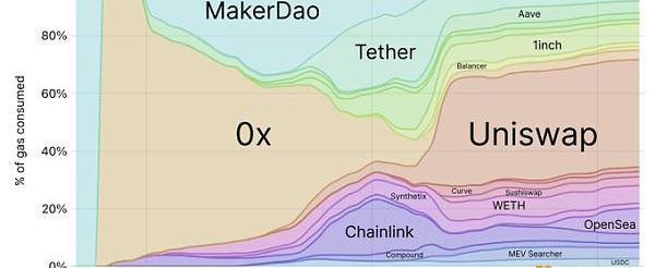 从Gas消耗能看清以太坊很多产品的兴衰,比如从DEX的兴起到DeFi再到NFT的轮动。