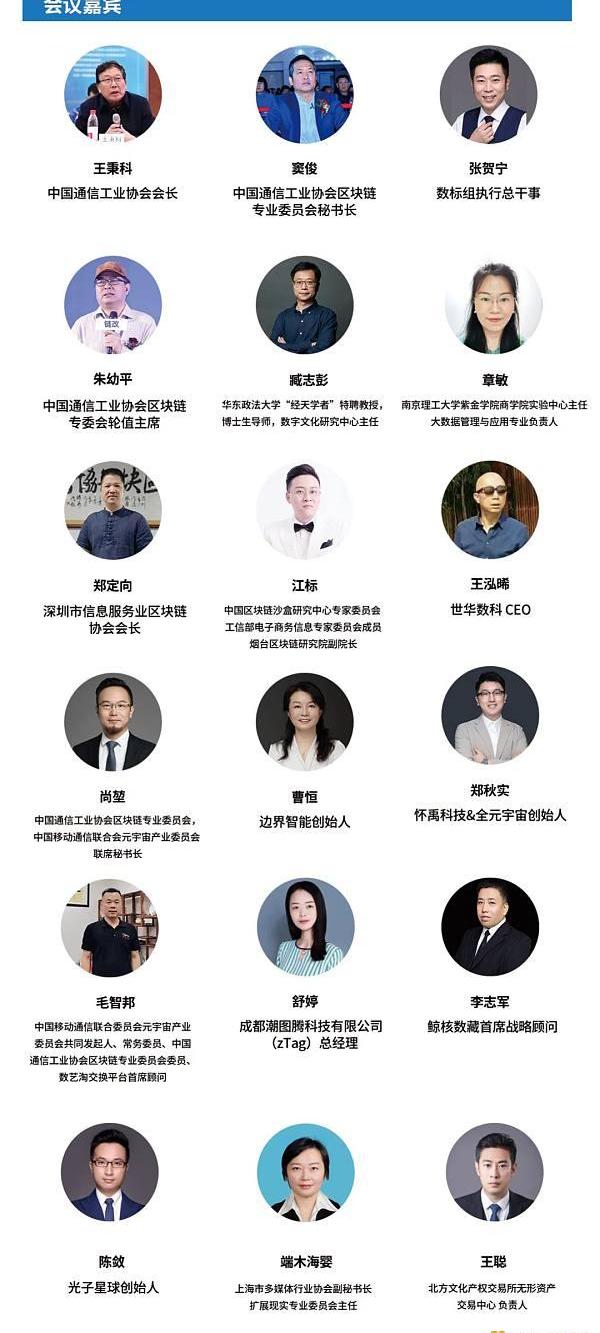 嘉宾:①.怀禹科技&全元宇宙创始人郑秋实.②.ztag创始人舒婷.③.数艺淘.④.中国区块链沙盒江标.⑤河南藏品荟董昊星.⑥光子玩品陈敛
