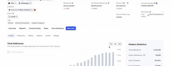 首先来看柴犬币的官方推特的人数,目前是有3,427,096人,我们再来看一下狗狗币,狗狗币是3,437,263人,这个数据相差已经只有10万了。然后另外一个非常重要就是柴犬币的持币地址数。