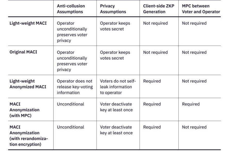 针对不同的隐私和复杂性,设计不同的MACI匿名化方案