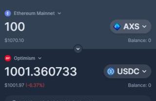 图为使用以太坊上AXS代币兑换Optimism上USDC
